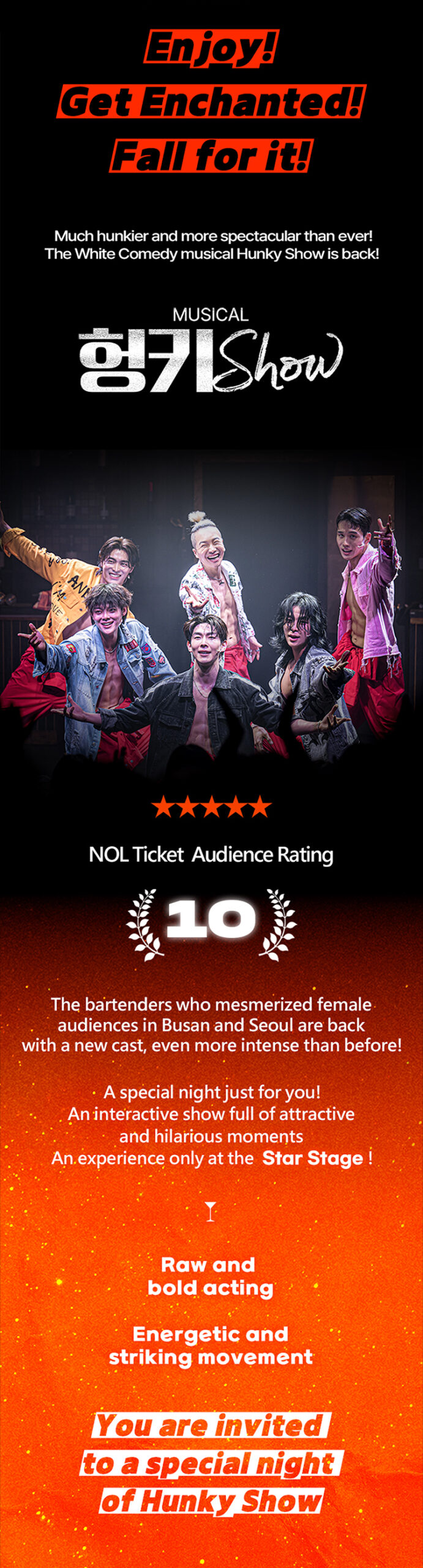 Get ready to be swept off your feet! Korea’s sensational White Comedy musical – HUNKY SHOW is back, bolder and hotter than ever!
